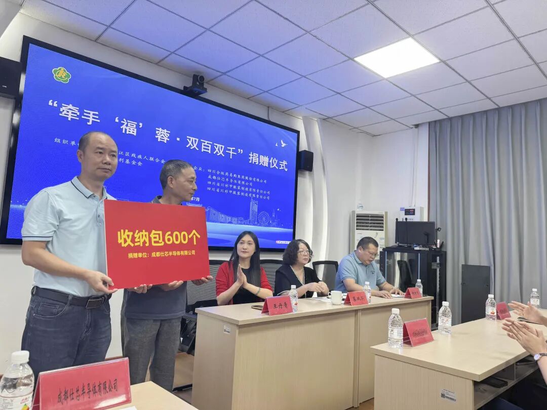 随后,成都仕芯半导体有限公司向残疾人代表捐赠收纳包600个,金马街道专干代表受赠,这些收纳包将为残疾人的日常生活带来极大的便利。